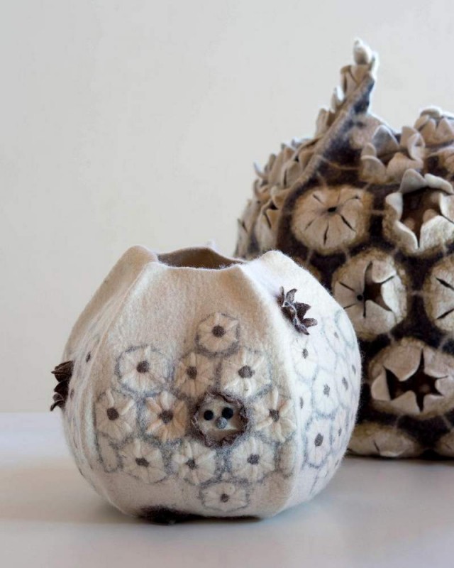 Die Kursteilnehmer gehen mit ihrem individuellen Filzobjekt nach Hause. Lassen sie sich/Laßt Euch verzaubern von einem spannenden Kurs und Maria Friese, die extra aus Frankreich für diesen Kurs zu uns in die Filzwerkstatt kommt.