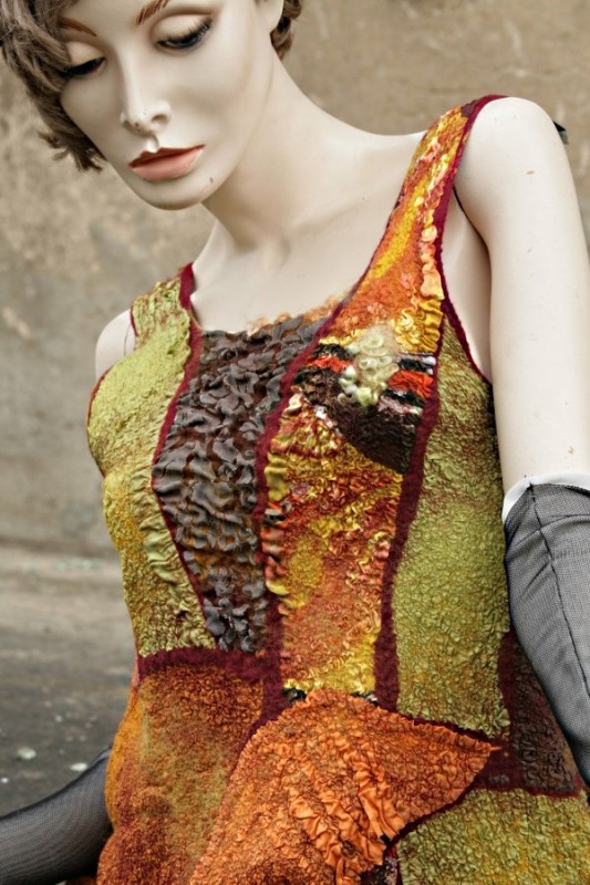 Patch Technik filzt man unterschiedliche dünne Seidenstoffe oder andere