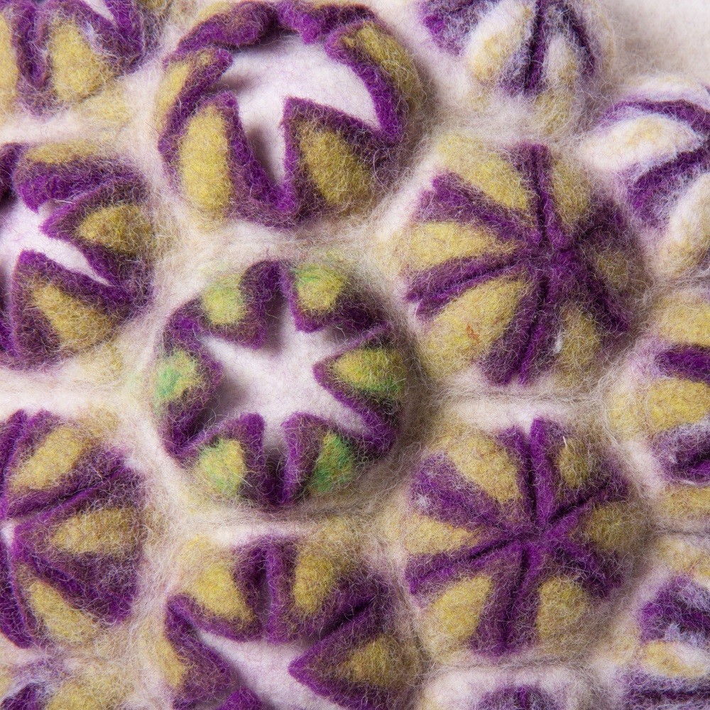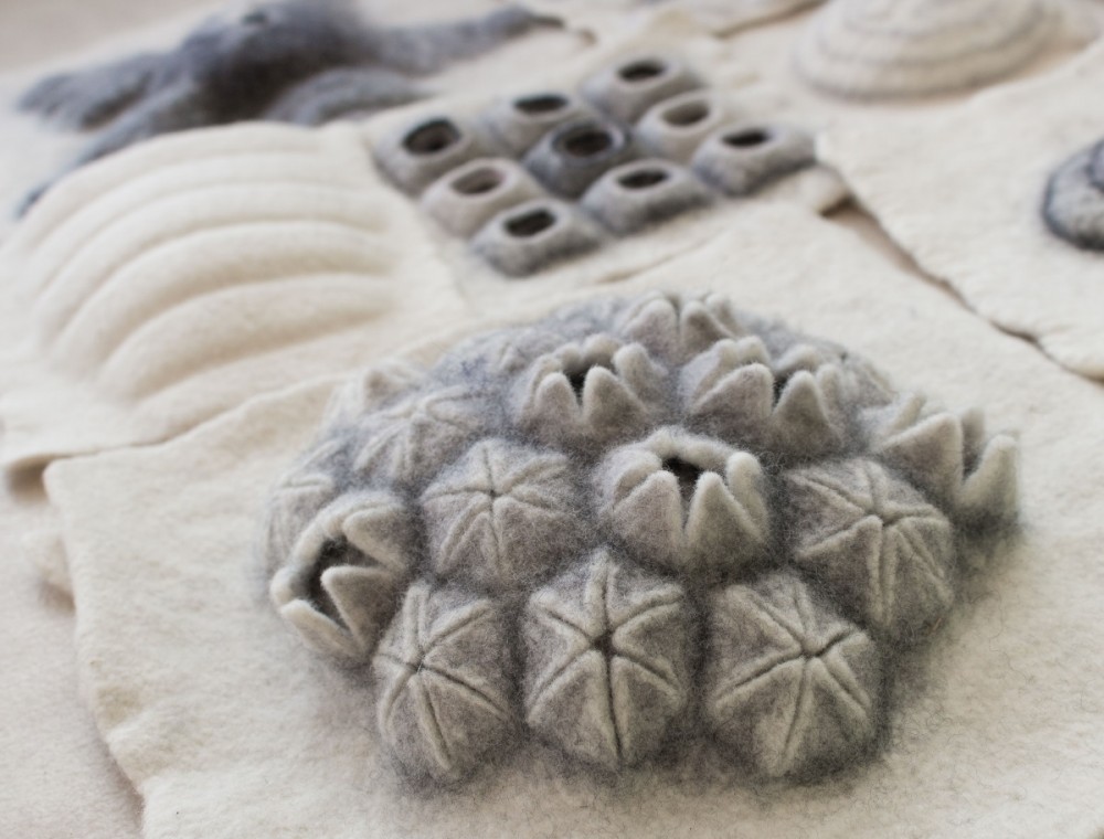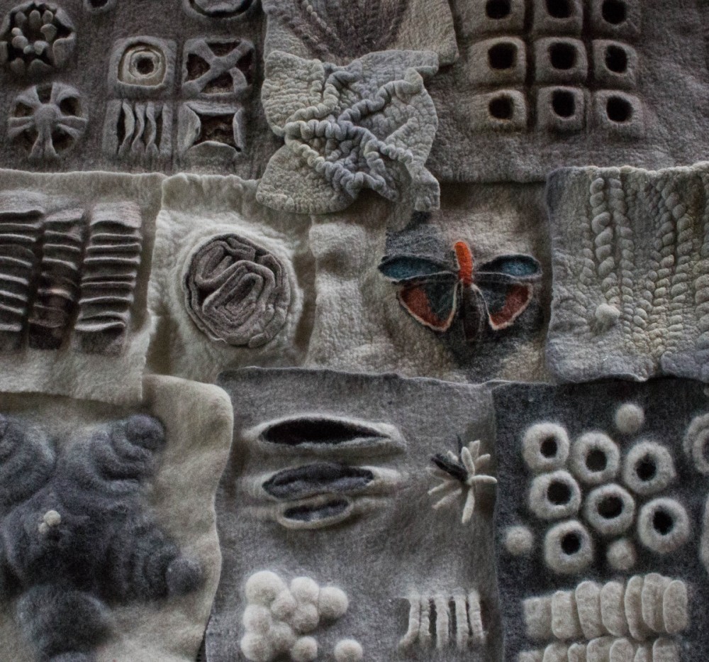 Nachdem erlernen verschiedener Techniken, in denen wir mit Vorfilz, Schablonen, Nadel und Faden oder auch der Filznadel arbeiten, geht es in der Zweiten Hälfte des Kurses um das Entwickeln eigener Strukturen und Motive mittels individueller Themen. Ich begleite die Teilnehmer in ihrem ganz persönlichen Forschungs-Projekt um eigene Inspirationen umzusetzen und neue Strukturen und Motive zu entwickeln. Die Möglichkeiten sind unendlich. Dabei ist vor allem der Weg wichtig, der kreative Prozess. Die Teilnehmer werden ermutigt und begleitet, um eigenständig nach neuen Gestaltungsmöglichkeiten zu forschen und durch Freude am Spielen und Experimentieren neue Wege zum Selbstausdruck zu finden.