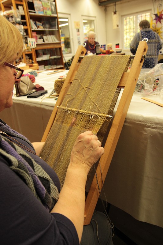 Was bin ich froh, dass es den kleinen Italiener gibt, so bezeichnet ihn liebevoll wer damit gearbeitet hat. Es ist der genialste Webrahmen den Ingrid Frank in ihrer langjährigen Zeit als Weberin kennengelernt hat. Er bietet unglaublich viele Möglichkeiten und hat selbst dem Webstuhl einiges voraus, da er ein zügiges Einrichten, ein gutes Abweben und ein kreatives Spiel der Fäden erlaubt. Die ausgebildete Weberin und Filzerin Ingrid Frank www.gewolltundverwebt.de) bietet uns an diesem Kurswochenende die Möglichkeit sich mit der Handhabung des Rahmens und des Webens intensiv auseinanderzusetzen, erste Webstücke entstehen.