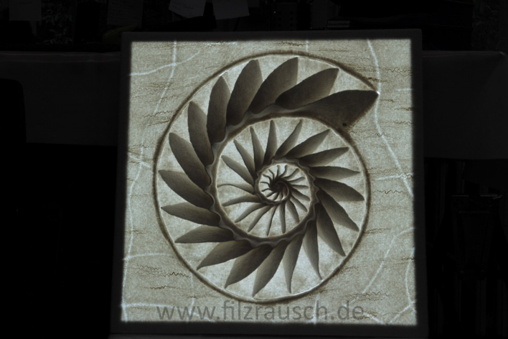 In diesem 4 1/2 Tage dauernden Kurs werden wir Wandobjekte mit plastischen Strukturen auf Vorder- und Rückseite filzen, welche auf Lichtplatten gespannt werden. Das Besondere ist, dass, sobald das Licht eingeschaltet ist, die hintere Struktur durchscheint und so die vordere ergänzt und unterstreicht.