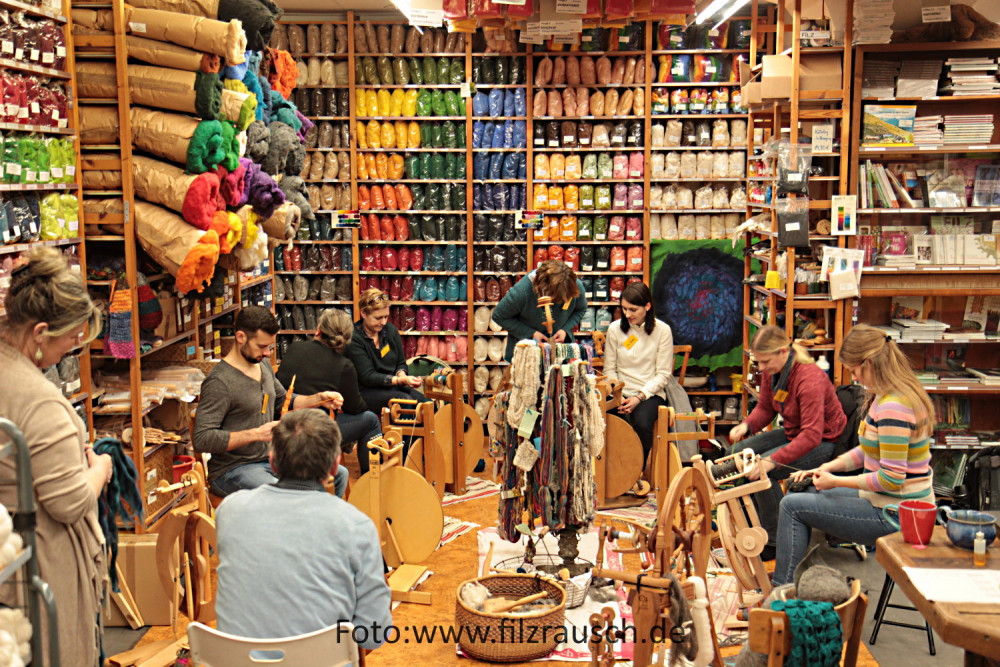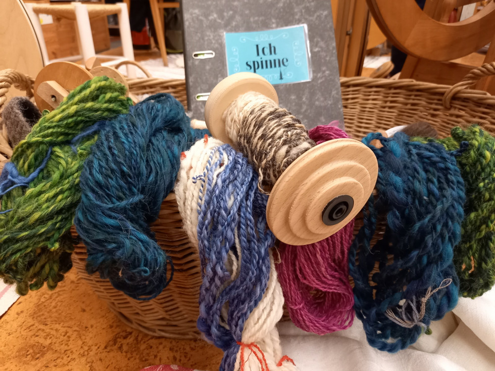 Handspindel und Spinnrad können im Kurs von Filzrausch ausgeliehen werden.
