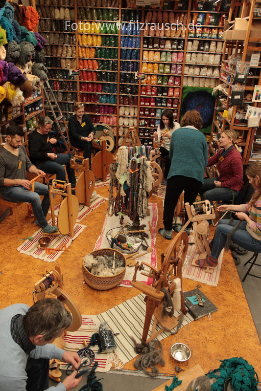 Handspindel und Spinnrad können im Kurs von Filzrausch kostenfrei ausgeliehen werden.