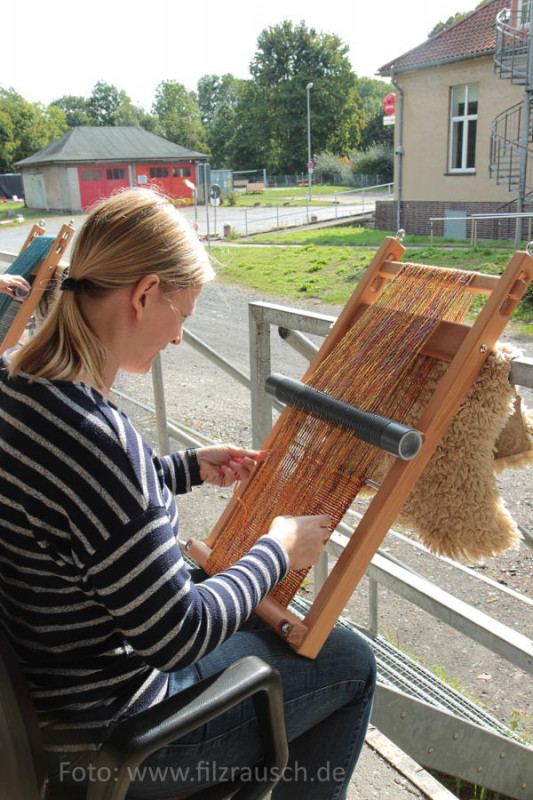 Was bin ich froh, dass es den kleinen Italiener gibt, so bezeichnet ihn liebevoll wer damit gearbeitet hat. Es ist der genialste Webrahmen den Ingrid Frank in ihrer langjährigen Zeit als Weberin kennengelernt hat. Er bietet unglaublich viele Möglichkeiten und hat selbst dem Webstuhl einiges voraus, da er ein zügiges Einrichten, ein gutes Abweben und ein kreatives Spiel der Fäden erlaubt. Die ausgebildete Weberin und Filzerin Ingrid Frank www.gewolltundverwebt.de) bietet uns an diesem Kurswochenende die Möglichkeit sich mit der Handhabung des Rahmens und des Webens intensiv auseinanderzusetzen, erste Webstücke entstehen.