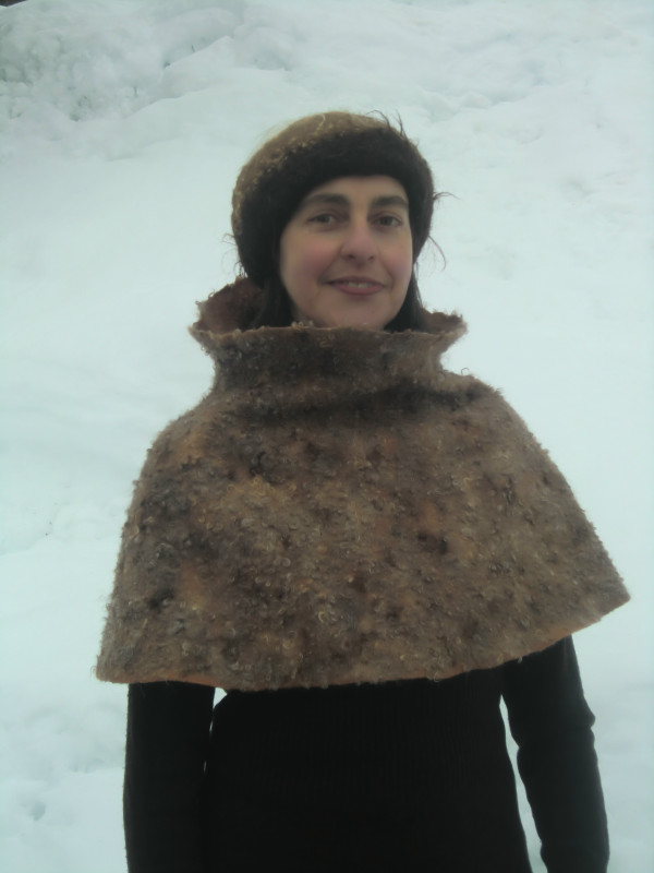 Jede Rohwolle ist in ihrer natürlichen Lockigkeit einzigarig und je nach Filzfähigkeit und Kräuselung entweder pur oder mit kardierter Wolle als Basis einsetzbar. Wir wollen in diesem Kurs, aufbauend auf ersten Proben, einen kleineren Umhang/ Kragen und/ oder einen Hut/ Haube herstellen, je nach Wolle eher flauschig fellig oder strukuriert.