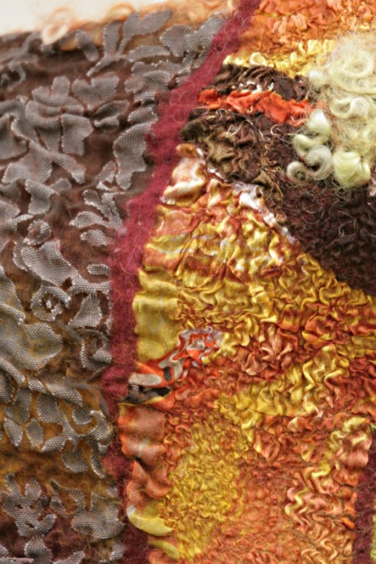 Patch Technik filzt man unterschiedliche dünne Seidenstoffe oder andere
