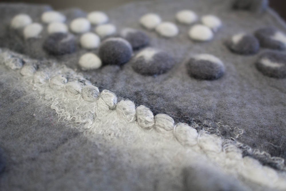 Nachdem erlernen verschiedener Techniken, in denen wir mit Vorfilz, Schablonen, Nadel und Faden oder auch der Filznadel arbeiten, geht es in der Zweiten Hälfte des Kurses um das Entwickeln eigener Strukturen und Motive mittels individueller Themen. Ich begleite die Teilnehmer in ihrem ganz persönlichen Forschungs-Projekt um eigene Inspirationen umzusetzen und neue Strukturen und Motive zu entwickeln. Die Möglichkeiten sind unendlich. Dabei ist vor allem der Weg wichtig, der kreative Prozess. Die Teilnehmer werden ermutigt und begleitet, um eigenständig nach neuen Gestaltungsmöglichkeiten zu forschen und durch Freude am Spielen und Experimentieren neue Wege zum Selbstausdruck zu finden.