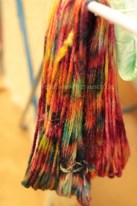 Gefärbt werden nach Euren Wünschen Strickgarne, Kammzüge zum Filzen und Spinnen, Locken und Stoffe aus Seide und Wolle.