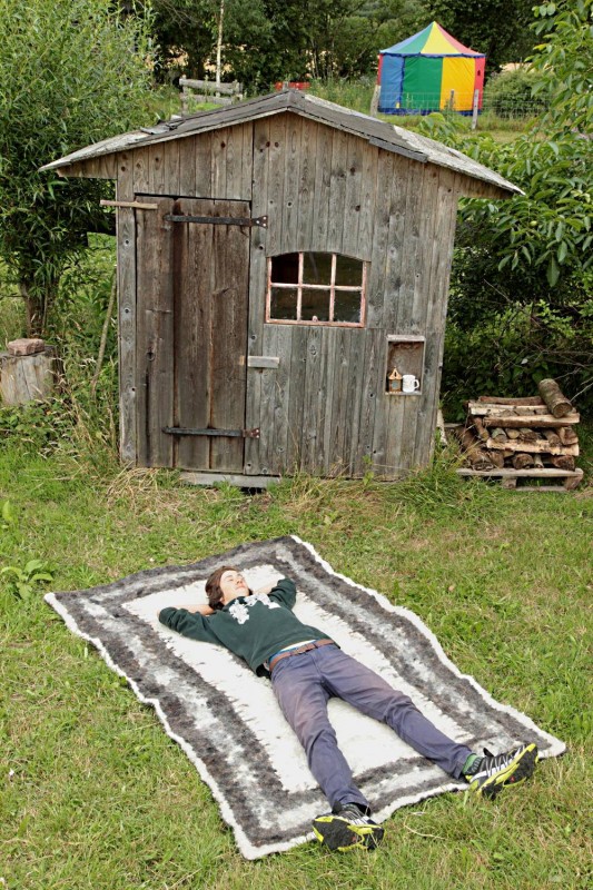 Im Rahmen der 13.Kreativfreizeit auf Hof Balm werden wir mit vielen helfende Händen und guter Laune einen Teppich für Hof Balm filzen. Der Teppich soll noch ein Schmuckstück für Hof Balm werden und auf Hof Balm bleiben. Letztes Jahr haben wir bereits einen wunderschönen Teppich gefilzt, der dann im Tippi seinen Platz gefunden hat. Wenn genug Zeit ist werden wir auch Sitzfelle (Veggifell), transparente Filze oder andere spannende Sachen aus Rohwolle für uns herstellen