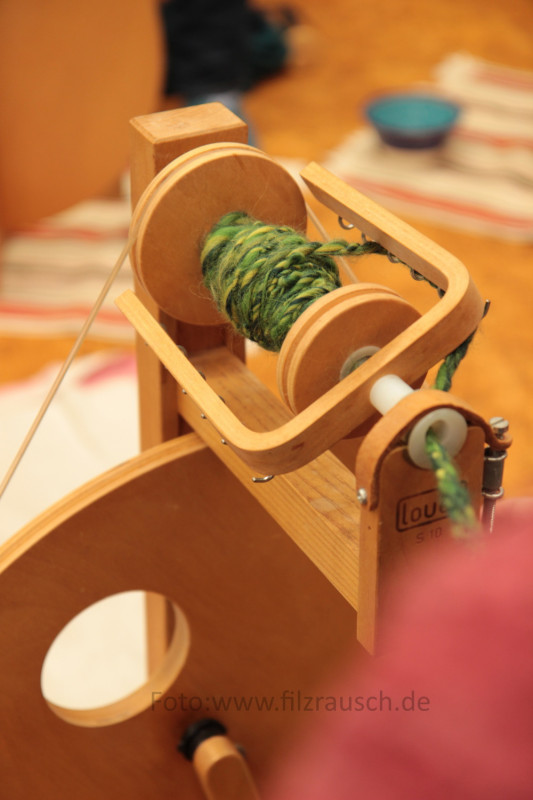 Handspindel und Spinnrad können im Kurs von Filzrausch ausgeliehen werden.