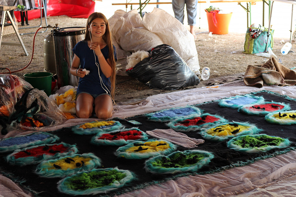 sich, seine Filzsachen, sein Spinnrad oder einen mobilen Webrahmen mitbringen möchte